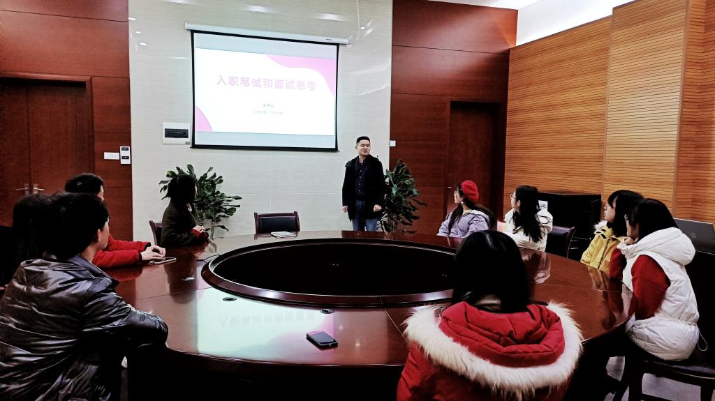 为提升数学学院研究生就业能力,进一步推动精准就业,2021年12月31日,数学学院组织开展“就业能力提升”团体辅导,本次活动邀请到安徽省烟草专卖局吴中山老师主讲,数学学院十余位研究生参加了本次活动。本次团体辅导围绕“入职笔试和面试”相关问题来展...