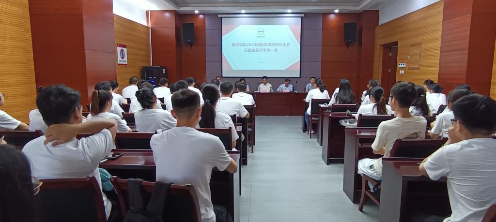 2023年9月7日,在科教楼A座第五会议室,数学学院举行2023级研究生新生见面会暨开学第一课。学院院长张莉、副院长开晓山,导师代表朱士信教授、檀结庆教授,全体2023级研究生新生,研究生辅导员、教务员等参加活动。活动由党委书记范仁庆主持。张莉代表学院...