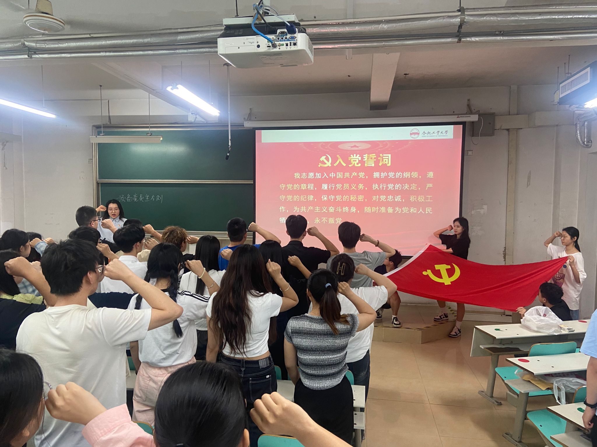 在中国共产党成立103周年到来之际,2024年6月24日下午,数学学院在翠7教101教室组织开展迎“七一”主题党日活动暨2023-2024学年新发展党员宣誓仪式。本次活动由学院党委书记范仁庆主持,9个师生党支部全体党员参加。