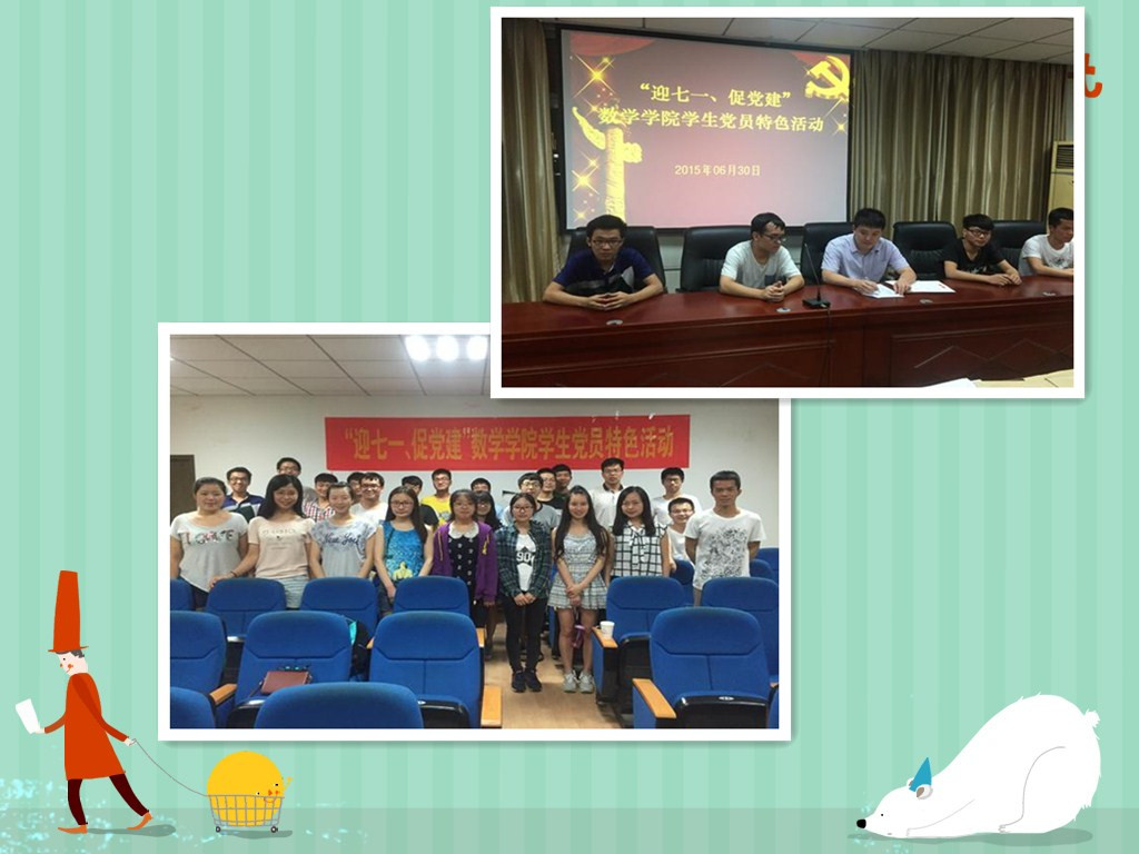 为庆祝中国共产党建党94周年,进一步提高党员队伍建设,6月30日晚,数学学院在数学学科楼509报告厅,开展“迎七一、促党建”学生党员特色活动,数学学院2012级辅导员刘政及24名学生党员参加了此次活动。 本次活动,围...
