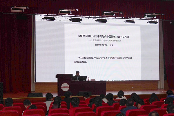 为切实把青年学生的思想和行动统一到党的十九大精神上来,让学生深入领会和把握党的十九大精神的思想精髓和核心要义,11月23日晚,数学学院党委书记方留在翡翠科教楼西楼二楼大报告厅为本科生、研究生上了题为《学习...