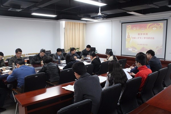 为了深入落实学校2018年党政工作要点,科学谋划学院2018年各项工作,3月14日下午,数学学院党委(扩大)学习研讨会在翡翠湖校区翡翠科教楼东楼1710举行,会议由学院党委书记方留主持,学院全体党委委员、师生党支部书...