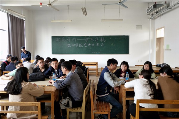 3月28日下午,数学学院“数苑有约——学长导航”免研经验交流会在翡翠湖校区举办。 交流会上,2014级免研到山东大学的阮中杰,免研到中国科学技术大学的刘慧航,免研到中科院自动化所的张明亮和免研到西安交通大学的...