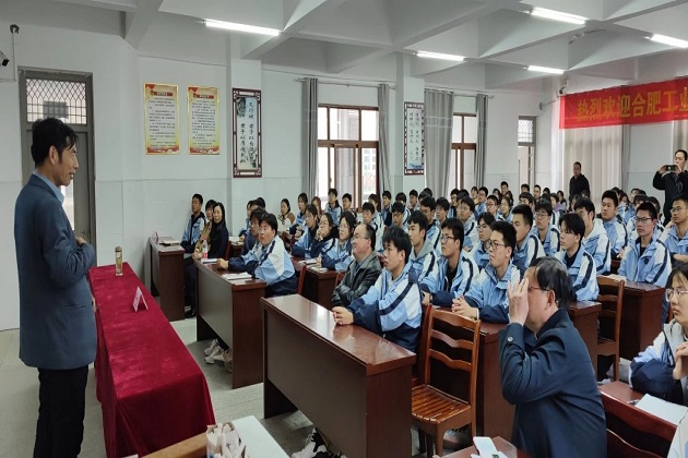 在灵璧中学,朱士信教授为高三学生做了一场题为“谈中学数学学习方法和大学数学的应用”科普报告,并介绍了合肥工业大学以及数学学院的基本情况。朱士信教授通过自身的求学工作经历鼓励同学们放松心态,认真备考,不断提升自我目标,勇于逐梦,努力成才。报告会后,朱士信教授、张莉院长和灵璧中学领导及骨干教师进行了座谈交流,灵璧中学校长王峰介绍了学校有关情况,双方就如何更好的将高中数学教学与大学数学教学进行衔接进行了热烈的研讨。
