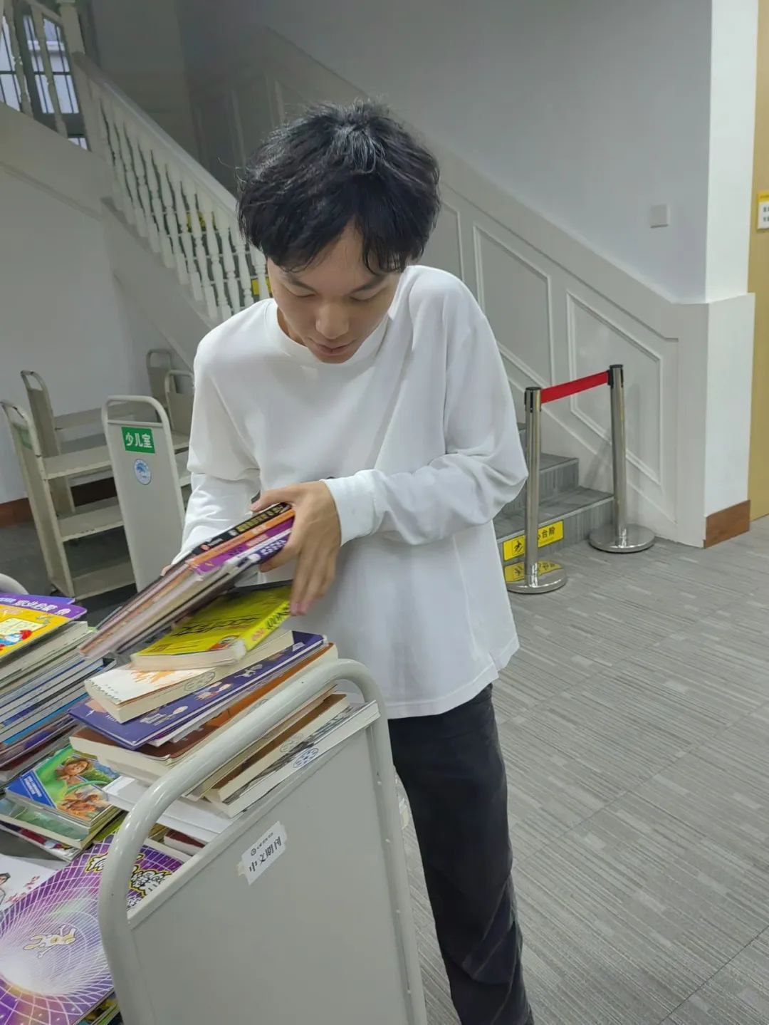 志愿者们分工合作,有条不紊地进行整理工作。面对逐渐归还的书籍,大家迅速分类、登记、归位,确保图书馆的运作保持高效。同时,志愿者们还耐心解答读者提出的问题,并帮助他们找到所需的书籍。