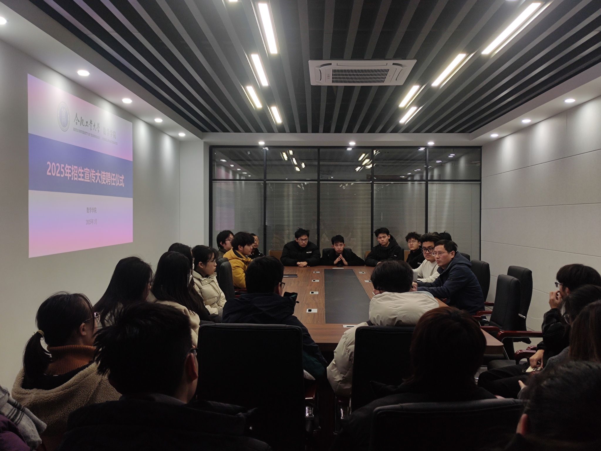 1月16日上午,数学学院在翡翠湖校区科教楼B座15楼会议室举行2025年寒假招生宣传工作布置会暨宣传大使聘任仪式。学院教学副院长开晓山、辅导员张浩男和新聘任的34名招生宣传大使参加了此次活动。