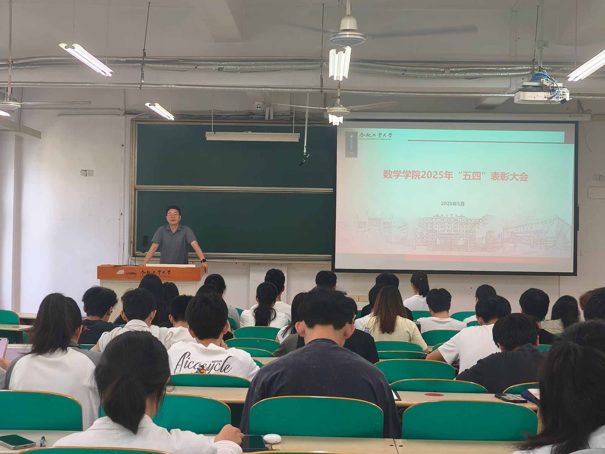 5月21日下午,数学学院在翠5教301室举行2024-2025年度五四表彰大会。学院党委副书记兼纪委书记彭帮国老师、团委书记韩玉洁老师出席大会,学院低年级本科生参加大会。会议由学生会秘书长张浩男主持。