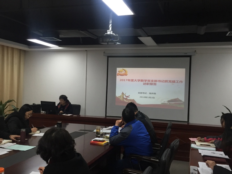 为全面学习宣传贯彻党的十九大精神,深入贯彻落实习近平新时代中国特色社会主义思想,按照新时代党的建设的总要求,推动全面从严治党向基层延伸,根据学校党委要求,数学学院于1月2日下午于翡翠湖校区科教东楼1710开展了基层党支部书记抓党建述职答辩会。学院党委委员、全体教工及学生党支部书记、学生辅导员、教师代表及学生代表参加了会议。