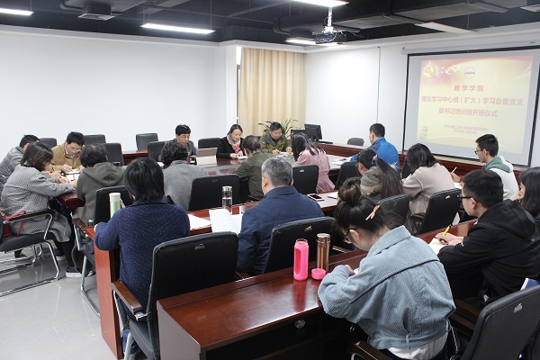 据悉,党的十九大胜利召开以来,数学学院党委先后组织学院理论学习中心组学习、党支部书记会议、全体党员大会、专题研讨等,采取线上线下相结合的方式,积极引导广大师生学习宣传贯彻党的十九大精神。数学学院将以党的十九大精神为指引,积极贯彻落实学校党委决策部署,努力开创学院事业发展的新局面。