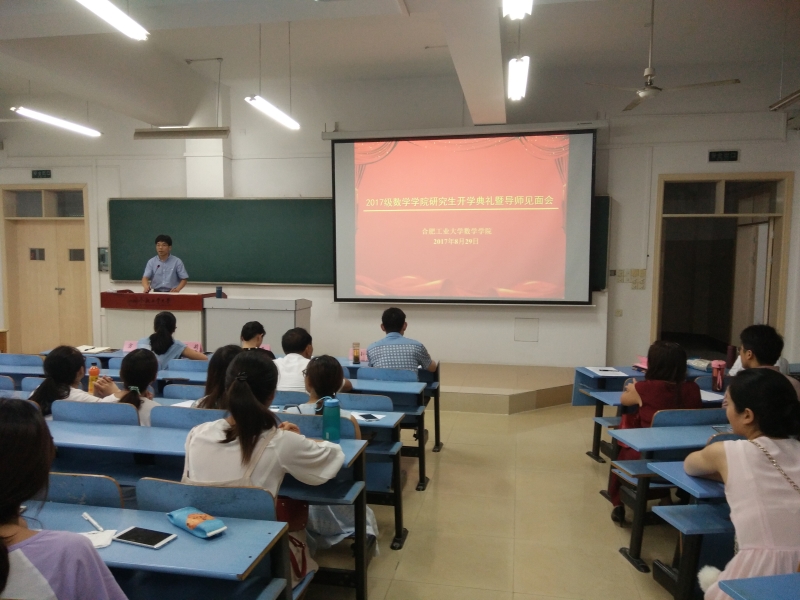 8月29号下午,数学学院在翠六教202教室举行2017级研究生开学典礼暨导师见面会。全院硕士生导师以及全体2017级研究生参加此次大会,大会由学院党委书记方留老师主持。