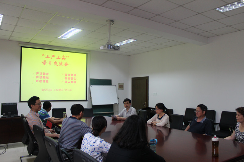 根据《数学学院关于开展“三严三实”专题教育实施方案》,6月24日下午,工程数学党支部召开了“三严三实”专题学习交流会,工程数学党支部的党员参加了学习交流。