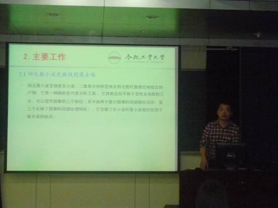 5月7日上午8:30,我院在逸夫楼1107报告厅成功举办“斛兵论坛”之数学专场暨科研梦共进交流会,邀请了研究生科技标兵刘卫同学与参会同学交流科研工作经验,并做了题为“新型小波变换域图像去噪和融合”的学术报告。数学学院部分研究生参加了此次报告会。