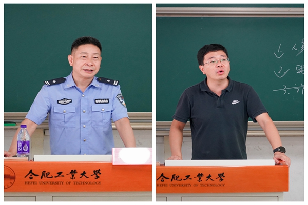 为迎接2024级新生,预防新生入校后发生诈骗事件,维护校园安全稳定,引导新生快速适应大学生活,9月1日,于翡翠湖校区5教101教室数学学院召开新生安全大会,会议由辅导员韩玉洁主持,党委副书记、纪委书记彭帮国、2023级本科生辅导员张浩男参加,会议邀请到翡翠湖校区驻校警员何维顺老师为同学们开展反诈入学教育。