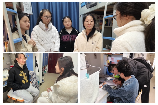 为进一步推进数学学院“朋辈帮扶,数动我心”特色项目的开展,激励学生党员充分发挥党员的先锋模范作用,2024年11月22至12月3日,数学学院学生党支部组织开展了党员进宿舍第一期的活动。支部成员两人一组对接一个寝室,与24级本科新生深入交流,全心全意为新生“办实事,解难题”。