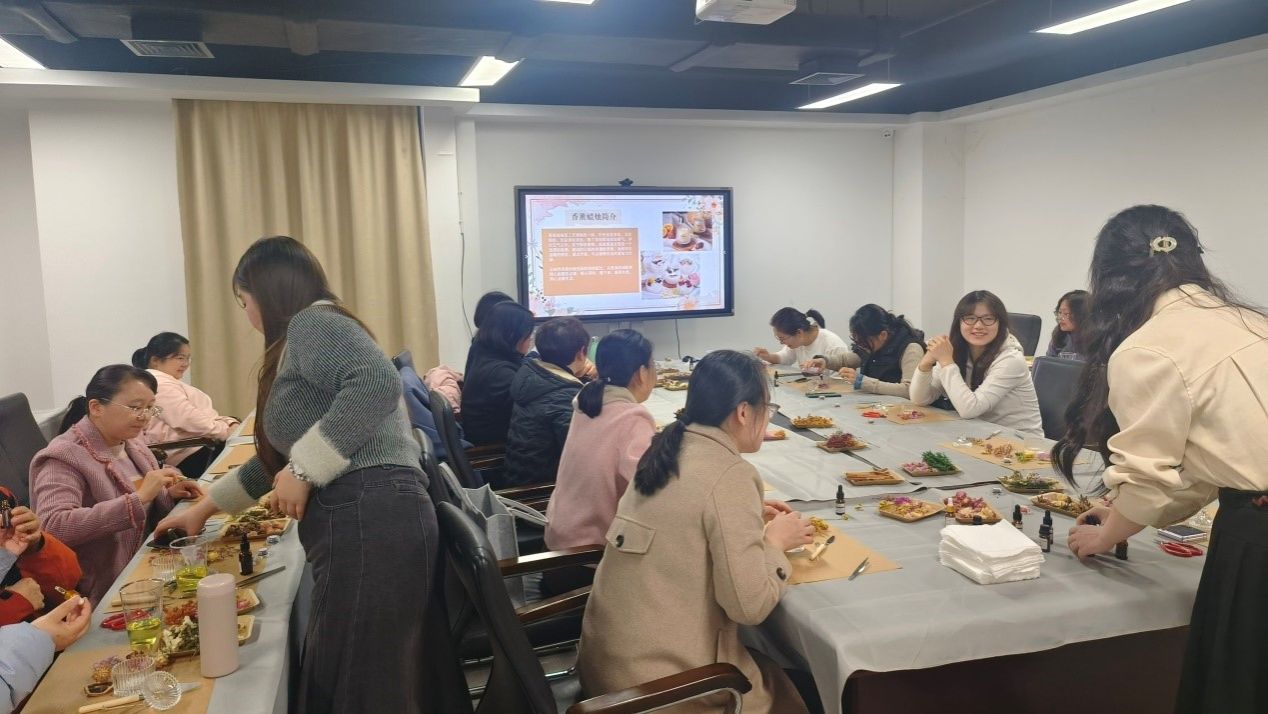 活动现场,专业老师首先为大家讲解了香薰文化的历史渊源、精油种类及功效、香薰制作步骤等知识。在老师的指导下,女教职工们纷纷化身“调香师”,挑选心仪的精油,按照比例调配,并加入干花点缀,精心制作出独一无二的香薰蜡烛。活动现场香气四溢,欢声笑语不断,大家互相交流制作心得,分享生活趣事,感受着节日的喜悦和学院的关怀。