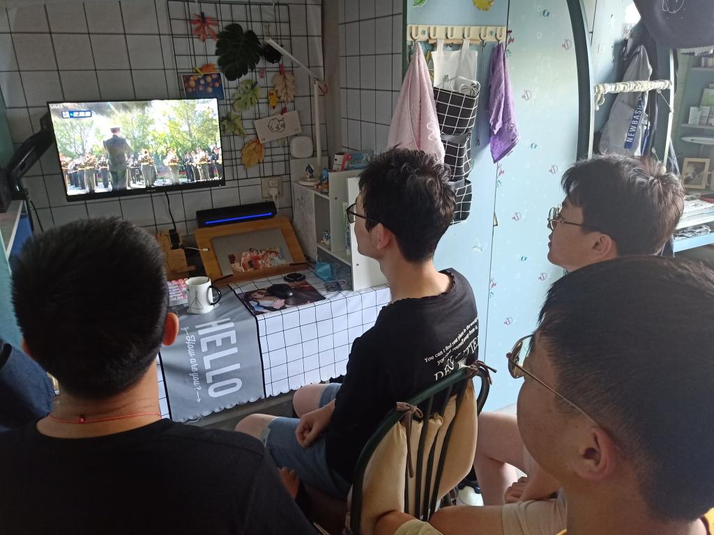 9月3日上午,数学学院组织学院2017级、2018级、2019级部分学生党员及学生骨干在翡翠科教楼B座1605室观看了中国人民抗日战争暨世界反法西斯战争胜利75周年纪念活动直播,学院各年级其他学生同时在宿舍观看仪式直播。