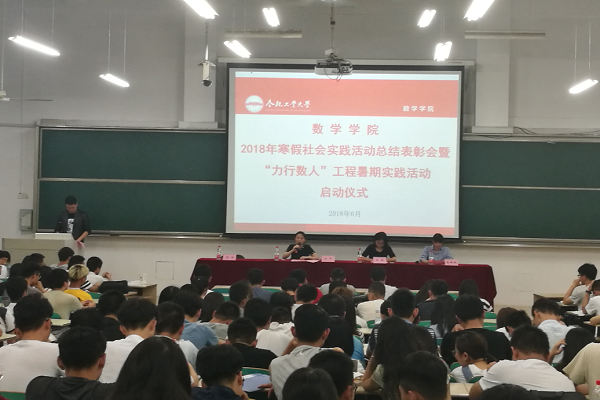 为深入学习宣传贯彻党的十九大精神和习近平总书记系列重要讲话精神,引导和帮助广大青年学生在社会实践中受教育、长才干、作贡献,6月2日晚,数学学院2018年寒假社会实践活动总结表彰会暨“力行数人”工程暑期实践活动启动仪式在翡翠湖校区二教202教室举行。学院相关负责人、辅导员和2016级、2017级全体同学参加了此次活动。