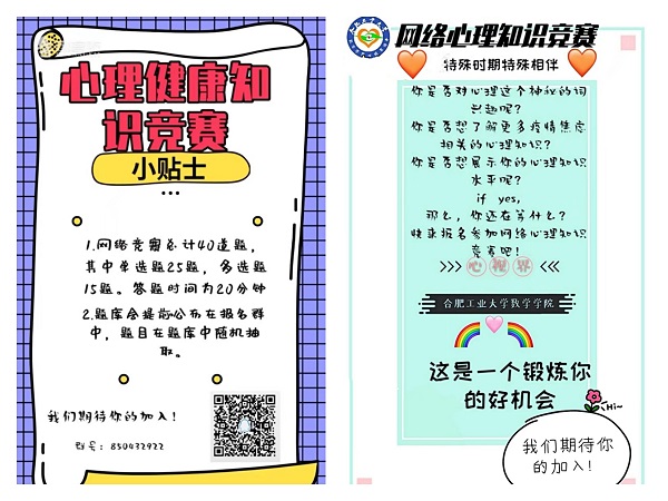 为了引导学生积极关注自身心理健康,增强心理素质,保持积极健康的心态,近期数学学院开展了“咱爱我”大学生心理健康宣传月线上主题活动。