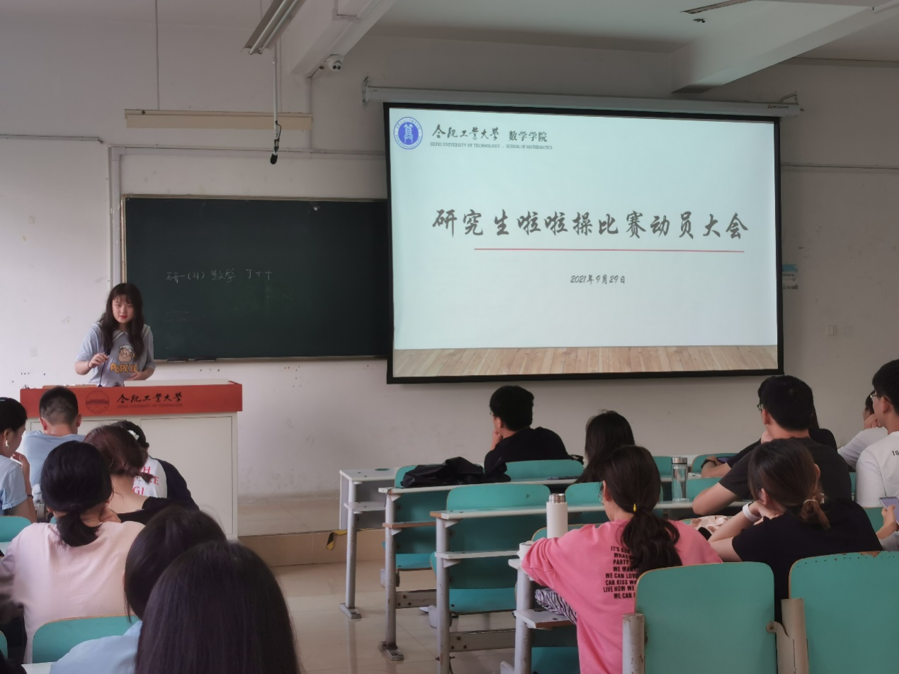 2021年9月29日下午3时,数学学院研究生会在翡翠湖校区7教303室开展了2021级研究生新生啦啦操动员活动。会议由主席团成员曹一丹主持,研一新生们以及研会全体成员积极热情地参与了此次活动。