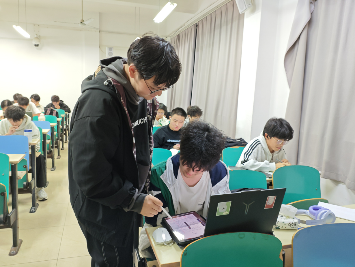 在这三间灯火通明的教室里,党员同志们充分发挥专业优势,以饱满的热情和扎实的专业知识,耐心地为本科新生解答数学学习中遇到的困惑。无论是复杂的公式推导,还是抽象的数学概念,党员同志们都一一细致讲解,与本科新生共同探讨解题思路,激发他们的学习热情。