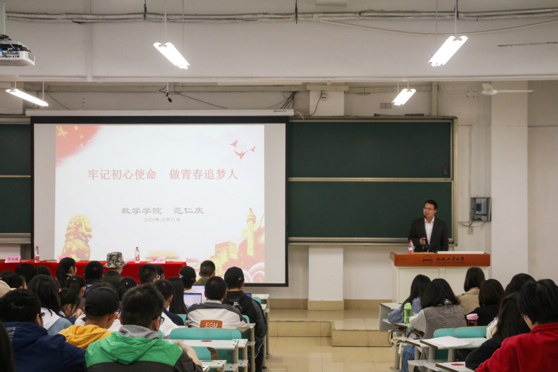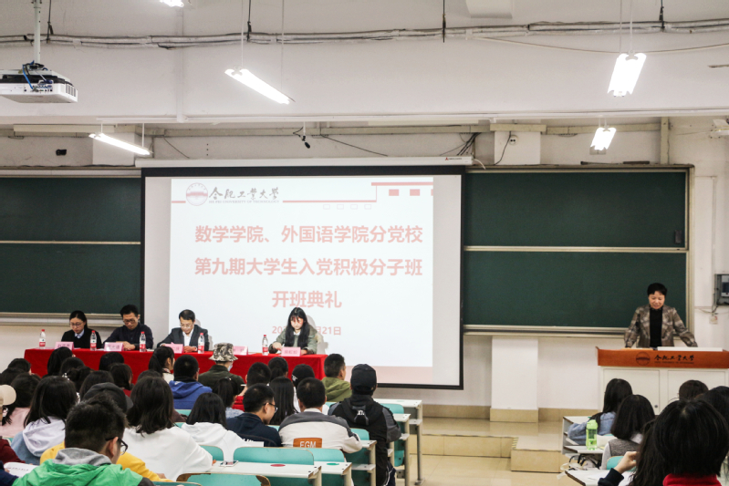 10月21日下午,数学学院、外国语学院入党积极分子培训班开班典礼在翡翠湖校区一教101举行。数学学院党委书记范仁庆,外国语学院党委副书记、纪委书记苏光靖,数学学院党委副书记、纪委书记魏婷,两所学院分党校有关老师,以及百余名入党积极分子参加典礼,典礼由魏婷主持。