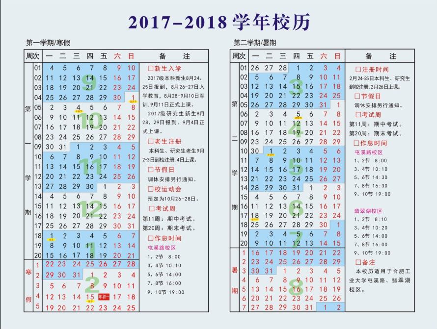 合肥工业大学2017-2018学年校历