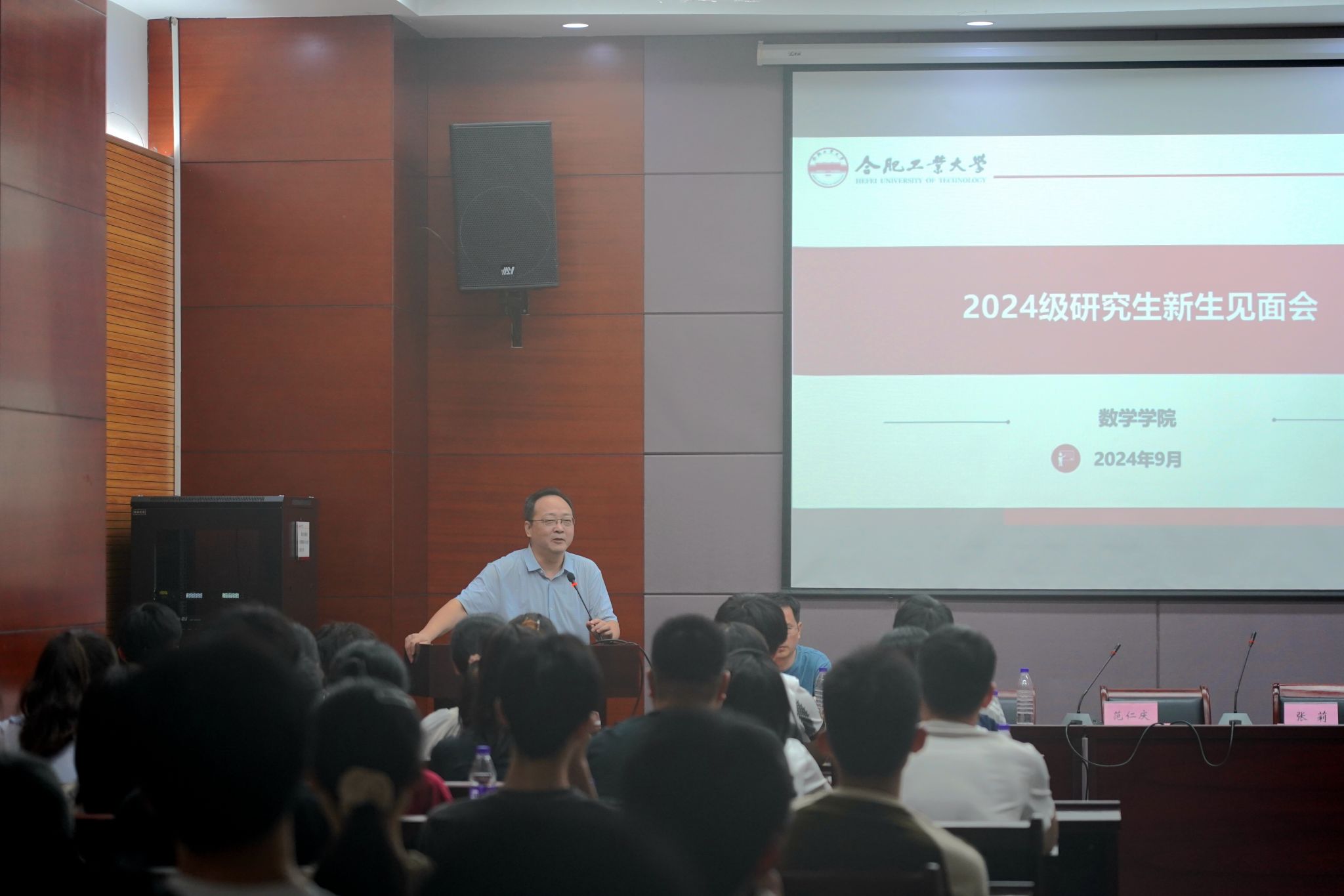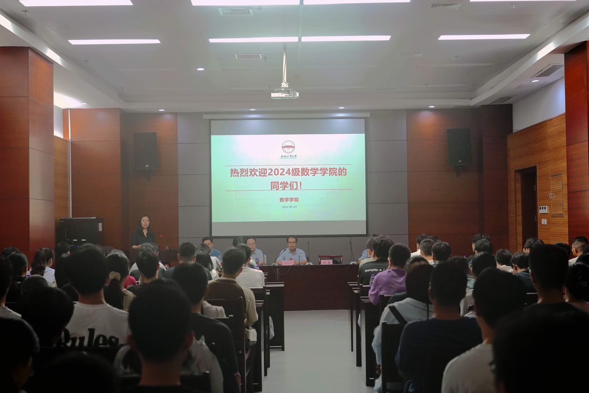 2024年9月7日,在科教楼A座第五会议室,数学学院举行2024级研究生新生见面会暨开学第一课。学院院长张莉、副院长开晓山、朱晓临教授、研究生辅导员韩玉洁、教务员杜壮平、全体2024级研究生新生参加活动。活动由党委书记范仁庆主持。