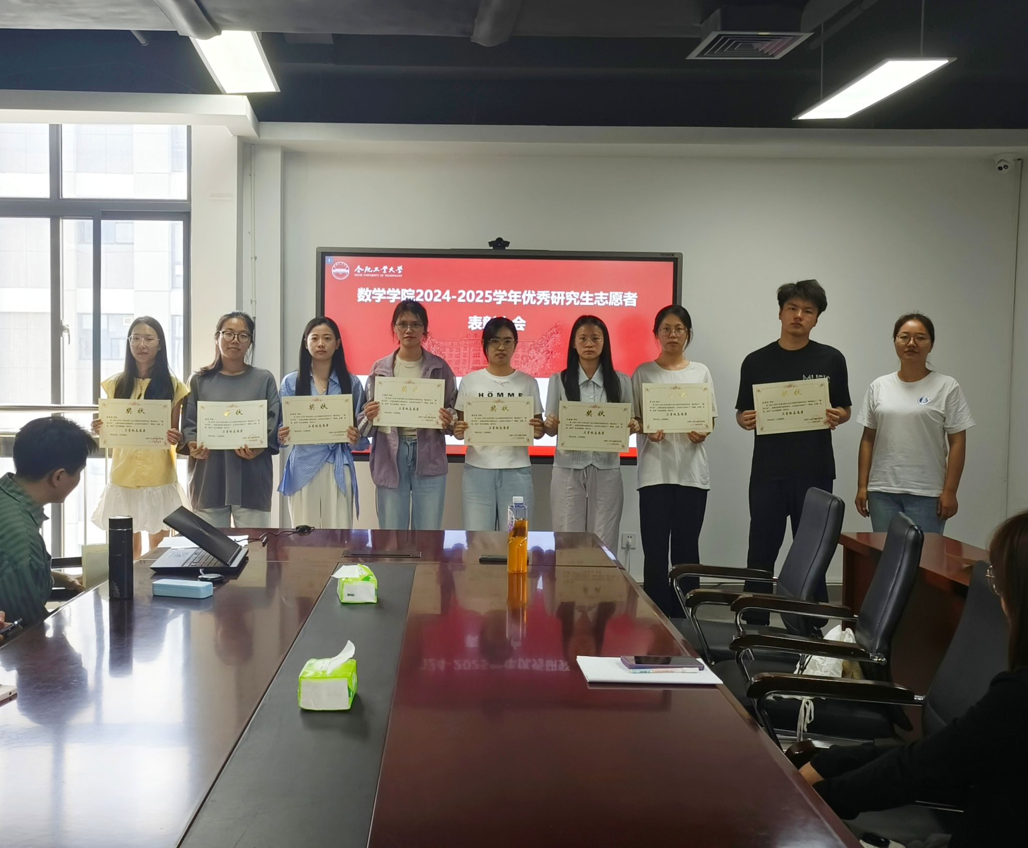 为弘扬志愿服务精神,表彰先进典型,激励更多学子积极参与奉献,2025年5月28日,数学学院研究生会在科教楼B座1710会议室举行2024-2025年度志愿者表彰大会。会议由研究生会主席团成员黄乐天主持,研究生辅导员韩玉洁及30余名志愿者代表出席大会。